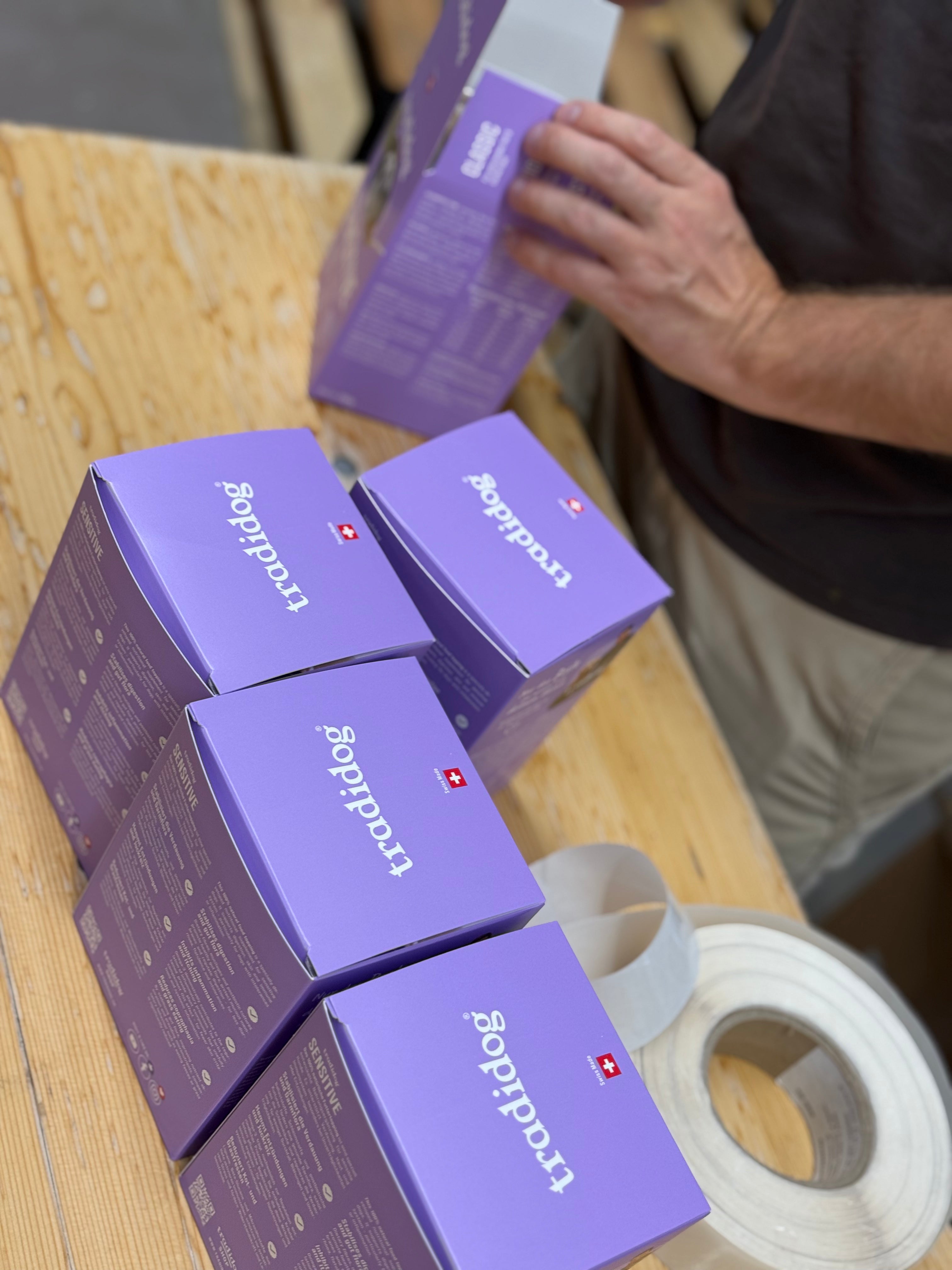 Bei Tradidog steht dein Hund im Mittelpunkt – jeden Tag, bei jeder Entscheidung. Wir produzieren alles selbst und ausschliesslich in der Schweiz, mit der Sorgfalt und Präzision, die du von Schweizer Qualität erwarten darfst. Unsere Zutaten sind rein natürlich, stammen aus kontrolliertem Anbau und werden so verarbeitet, dass ihre volle Pflanzenkraft erhalten bleibt. Denn wir glauben: Was deinem Hund wirklich hilft, kommt aus der Natur – und aus echter Verantwortung.