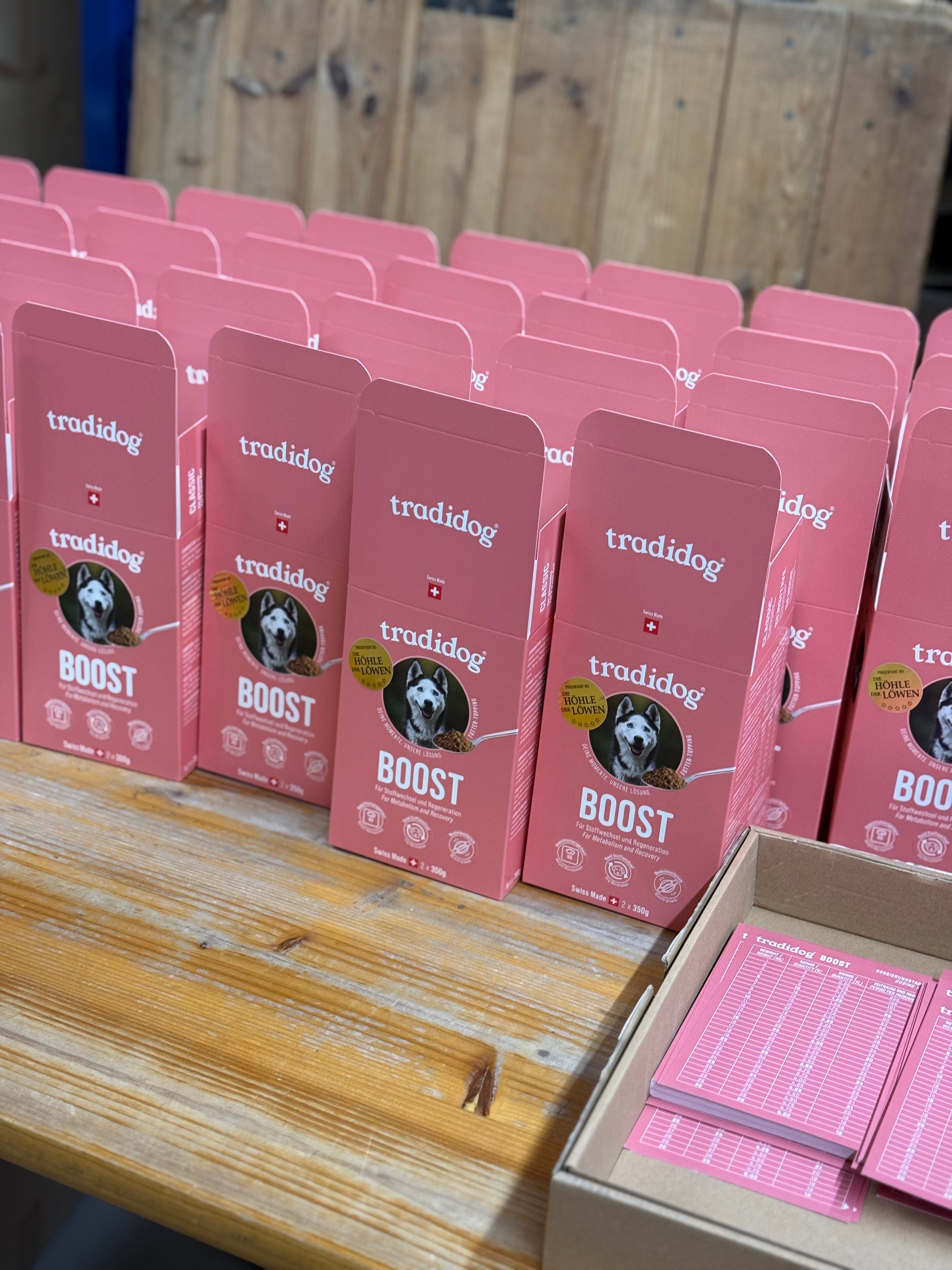 Tradidog ist ein 100% natürliches Futtertopping aus der Schweiz – entwickelt für mehr Gesundheit, Glanz und Lebensfreude bei deinem Hund.